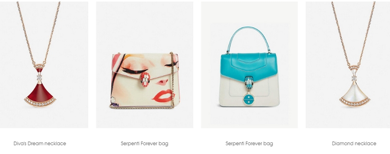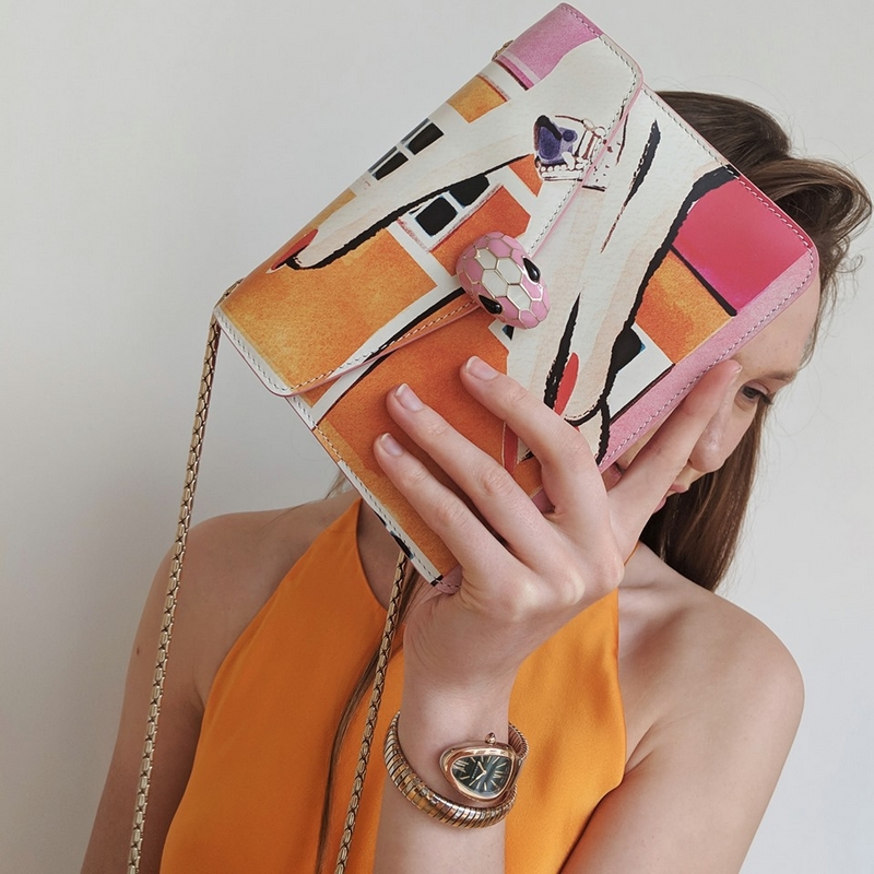 The pop-up’s sparkling jewellery bar displays the limited edition Serpenti Forever Accessories collection with six new and exclusive bags. The rainbow display of electric pinks and blues is completed with lipstick charms. There is also a special edition Serpenti Tubogas watch with a green Guilloché dial, and a preview of two new rose-gold necklaces from Bulgari’s Divas’ Dream collection.