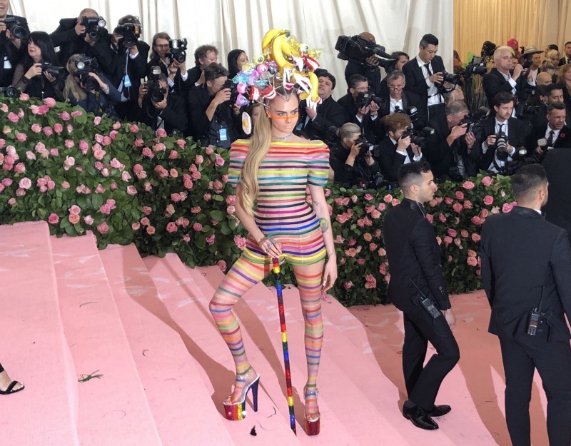 Caradelevingne shows off her campy ensemble for the MetGala
