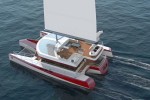 An extended deck accommodates a 5.2m tender and hydraulic crane. Each ama houses a lazarette with fold-down swim platform aft for water sports fun or simply a place to store water toys.