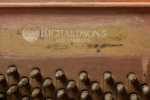 What sets this piano apart from the other–aside from the fact that appears throughout the film, rather than in a single flashback–is that the lid has been altered to accommodate a pivotal plot point. Even in the stage version, Everybody Comes to Rick’s, the piano was always the hiding point for Ugarte’s transit papers. In the film, however, the writers come up with the clever “misdirect” of having Rick hide them in plain sight of the entire room by depositing the papers quickly under the lid of the upright as Sam plays. The only way this works, however, is if the lid opens from the rear: otherwise Rick would have to reach over Sam’s shoulder to hide the papers, a hardly subtle move. The solution to this staging problem was to have the prop department completely remove the top of the piano, leaving the piece secured by a hook and eye only.