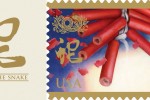 Sometimes a snake in the grass is a good thing. Artist Kam Mak‘s design for the 2013 Year of the Snake U.S. stamp (the sixth stamp in the Celebrating Lunar Near Year series) includes the Chinese character for “snake” depicted in traditional grass-style calligraphy. To help customers usher in the Year of the Snake, The 2013 Lunar New Year stamp is featuring firecrackers and paper-cut designs.