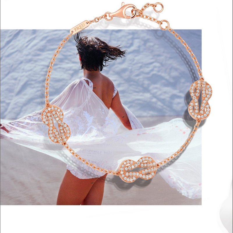 A cherished idea of Fred Samuel, the founder of Maison Fred, was to regularly invite artists to collaborate on the creation of new jewelry pieces, imbuing them with their singular aesthetic vision. Today, Fred Artistic Director Valérie Samuel is perpetuating the tradition initiated by her grandfather by inviting the jewelry designer Annelise Michelson to create a capsule collection for the Maison. It marks the unveiling of Chance Infinie, the new name of the 8°0 collection, launched in 2016.