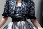 Slice through most of Chanel’s couture collections, and there is often something for the old guard and the new. Opening with the traditional tweed boucle skirt suits, models’ hair piled up into rockabilly rolls, the devil was in the detail. Slits were everywhere – thigh high on skirts, up fluted sleeves, and on necklines, all flashing pink and metallic linings. Evening gowns came next, with hemlines moving up, down and sideways. Skirts were puffball, tiered or long, occasionally sheer and chiffon.