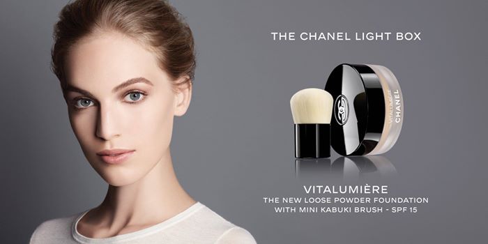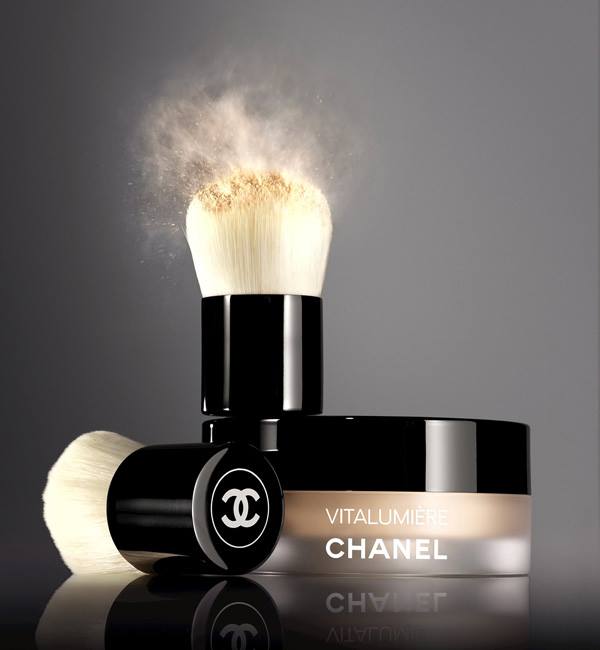 The new Chanel Vitalumière Loose Powder Foundation SPF15 is best applied in small circular motions with the mini kabuki brush adapted to the new texture.