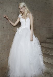 verawang bridal collection 2014 2015 – Ivory tulle ball gown with draped bodice, cotton straps and lace technique accented by silk chiffon and tulle technique.