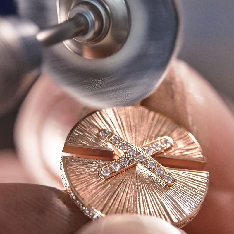 Jeux de Liens Harmony is a radiant tribute to Chaumet’s goldsmith expertise. Available in rose and yellow gold, in small, medium and large models, these precious talismans are carefully engraved with delicate beams of light. Every detail is set with brilliant-cut diamonds, adding light and shine to these timeless jewellery creations.