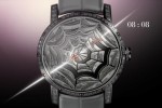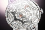 The dial of “Attrape-moi … si tu m’aimes” timepiece is adorned with 43 mother-of-pearl elements representing a spider’s web. The web motif ornates the case, is engraved on the case-back and on the buckle. This watch is an exceptional timepiece, available on order.