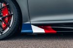 A striking feature of the Chiron Sport “Les Légendes du Ciel” is its special, matt-grey “Gris Serpent” paintwork, a modern interpretation of the exterior colour of the aircrafts from the 1920s. This stretches across the entire vehicle and is traversed from the front to the rear via the extending rear spoiler with a high-contrast, white gloss center stripe. The front wings are adorned with the “Les Légendes du Ciel“ logo. The “Le Bleu-Blanc-Rouge” tricolour in Blue, White and Red decorates the front area of the side sills made of exposed black carbon fiber. The door entry lights project the edition logo onto the ground when the doors are opened.