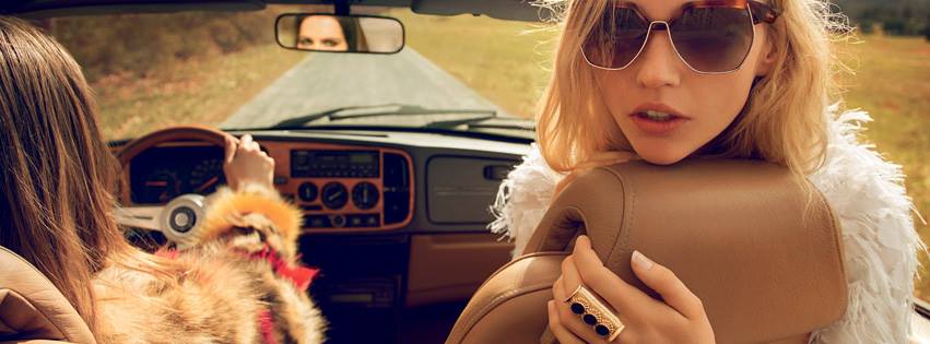 All roads lead to adventure. The “grand escape” is Chloé‘s theme revealed for Fall-Winter 2014 campaign. Russian model Sasha Pivovarova and 23-year-old Romanian star Andreea Diaconu (the face of Ralph Lauren, Boss Orange and Giuseppe Zanotti) drive a vintage Saab convertible through deserted landscape. The models become the heroines of their story, “exuding strength and self-confidence”. In a sponatneous moment, they seize their chance to run.