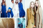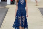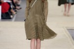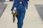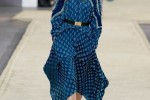 A rich and luxuriant palette of Persian blue, matte dessert khaki and crisp graphic white is flecked with shimmering metallic jacquard while fluid, long line dresses with trailing hems bring signature lightness.