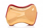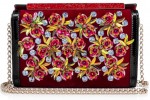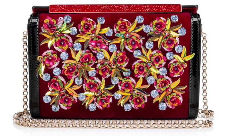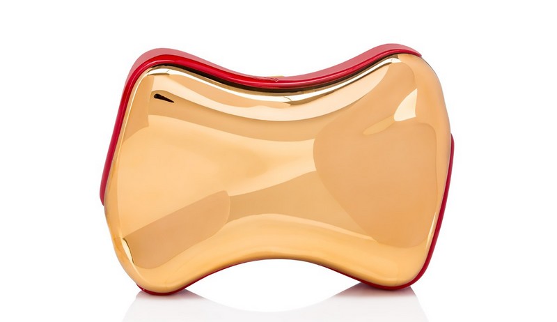 “Shoepeaks Clutch” is inspired by the imagination of the unparalleled David Lynch. Formed of two surreal “So Kate” silhouettes superposed on one another, this hard-bodied objet d’art moulds perfectly to your grip. Snaps closed with a delicate chain strap for optional shoulder wear. “Vanite Small Clutch” is an evening gem. This embellished hard-bodied case is finished with an opulent Loubi red crystal clasp bar. As Loubouting suggests, “carry as a clutch or on the shoulder with the optional chain strap.”