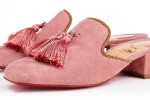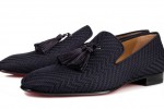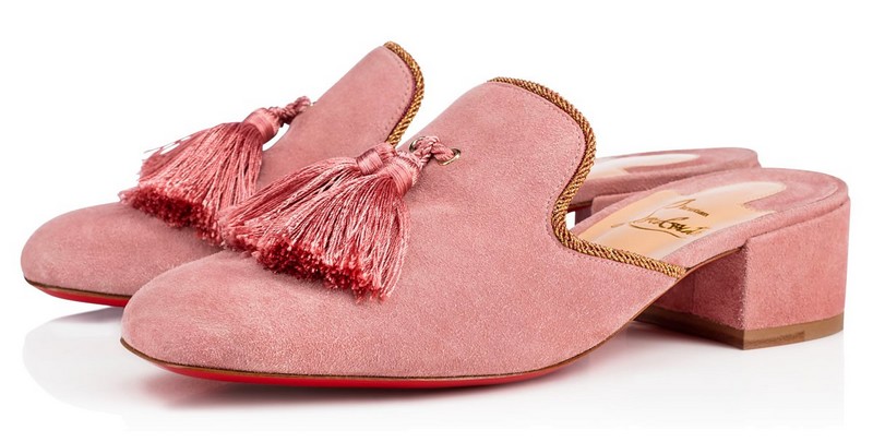 In lush fig velvet, Christian Louboutin Donaflor striking mule sandal is finished with a handmade detailing of sequin flowers with beaded embellishments and large sapphire crystals at the 100mm block heel. Put a swish in your step with “Barry Mule”. This elegant 35mm slide in voile suede with gold twisted piping features soft cotton threaded tassels that add a regal touch to your ensemble.