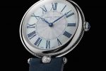 Each dial comes with its own strap available in either steel, steel / plated rose gold or blue satin, with a soft and silky feel. These two models complete their hint of glamour with a discreet mounting of 9 diamonds set into each horn, in addition to the cabochon in the crown of each model. Designed for the everyday dress of modern, distinguished women, these models have a Frederique Constant quartz movement, offering 6 years of operation.