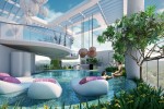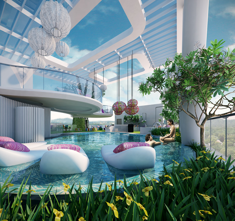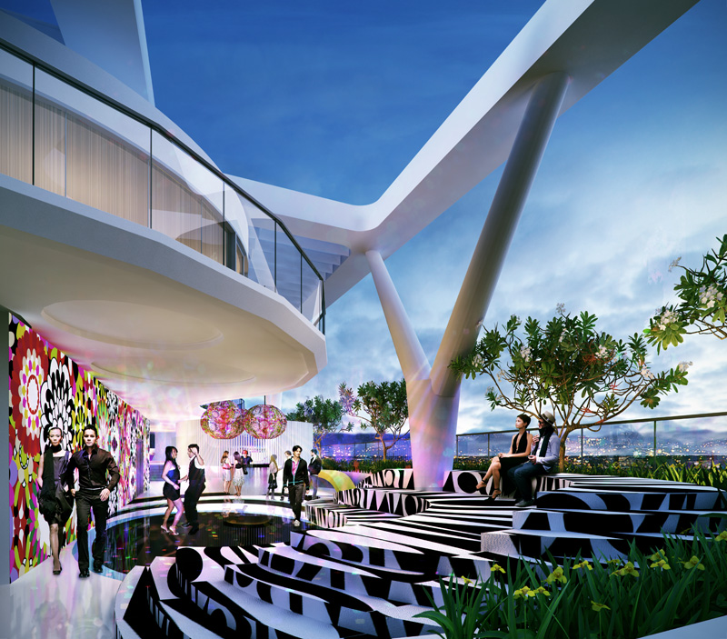 Perched atop Acqua Livingstone with sweeping vistas of the Pasig River and the Makati skyline, the top floor of the tower, called the “Canopy” is a split level complex built around a holistic view of human pursuits. The lower level contains functions rooms, business centers, gyms, library, spa, and other amenities that promote health, wellbeing, and cultural curiosity.
