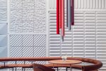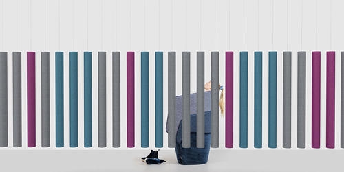 Industrial designer Andrea Ruggiero has found a way of turning waste material into a high performing commercial product. After two years of trials, the designers unveiled the sound-absorbing room divider Soundsticks. Soundsticks consists of textile scraps from upholstery production which have been moulded into the shape of a tube that is held together in the ends by recycled aluminum caps. These textile “sticks” hang from rails in linear or radial shapes that can be combined depending on need and space. Suspended in various heights, in clusters or in a row, Soundsticks modular hanging system offers endless possibilities to create new spaces in rooms.