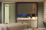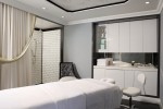 The Spa’s design is an extension of Lauren Rottet’s white and beige monochromatic palette for The Surrey. Art Deco light fixtures and ornate hand-painted armoires offset contemporary artwork, such as a plaster and mirror collage.