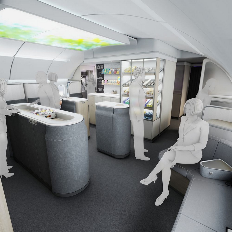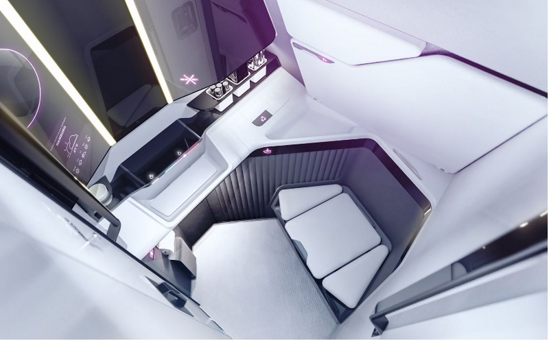The different cabin classes have been around for decades, but they are far from an inviolable law of nature. As a number of submissions in this year’s shortlist show, it’s possible to revolutionalise the way we imagine the cabin layout. The most radical idea comes from a student at Korea’s Hongik University, working in collaboration with seat manufacturer Adient. Called “1 for all”, it interweaves the various seat classes to achieve the maximum possible use of space. Premium and Economy passengers may find themselves next to one another or even above or below one another. A contrasting concept bringing passengers together is the Ultraflex-Zone from AIM Altitude, a response to the trend towards ultra-long-haul routes such as London-Australia. Passengers of all classes can use the snack bar, relax in lounge chairs, work on a presentation at a laptop workstation or do something for their physical comfort in the yoga zone.