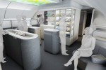 The spectrum ranges from ergonomically adjustable long-haul seats from Recaro to a self-service counter for snacks and drinks from Collins Aerospace. The trick with this solution, called “Flex Duet”, is that it can be folded out from partitions in front of the aircraft door during flight, giving a purpose to otherwise wasted space. Also rethinking confined spaces is north Germany´s Krüger Aviation in co-operation with zweigrad Design and its Future Lavatory. The new toilet cabin concept requires the same amount of space as conventional aircraft lavatories but is much easier to use and includes a baby change table with animated animal figures and an extra seating area for getting changed before landing.