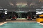 The sheltered tender deck for tenders up to 34’ offers space for the large variation of water toys, including the 3 person submarine.