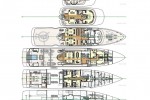 For the propulsion Mulder Design offers various options: twin diesel engines driving conventional propellers, hybrid propulsion combining main diesel engines with PTI gearboxes for electric operation up to 12 knots, a full diesel electric propulsion through pod-propulsors.