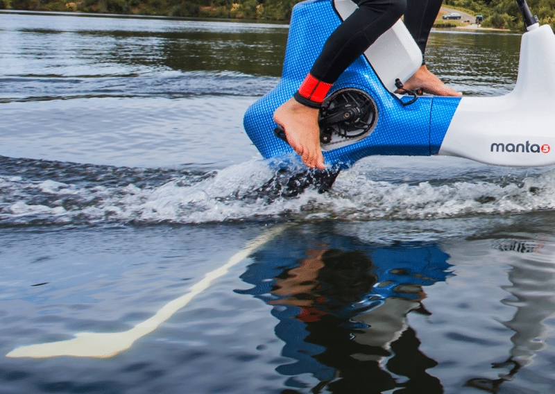 “In our pursuit to replicate the cycling experience on water we have created the world’s most advanced hydrofoil bike that allows you to plane across the water’s surface like never before,” says the New Zealand-based company Manta5.