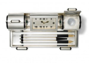 THE WORLD-EXCLUSIVE EXHIBITION BRILLIANT – CARTIER IN THE 20TH CENTURY – Desk set with clock. Cartier Paris for Cartier New York, 1931
