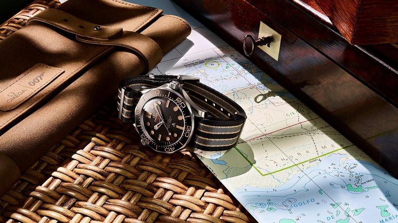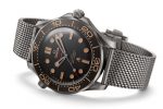 The Seamaster Diver 300m 007 Edition watch can be chosen on a titanium mesh bracelet with its innovative adjustable buckle, or on a striped NATO strap in dark brown, grey and beige, with 007 engraved on the loop. Each piece is delivered inside an exclusive brown fabric pouch.