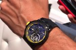Discover the world’s most prestigious gatherings & exhibitions“Fans of fine mechanics can enjoy an incredible transparent view of the new RD105SQ hand-wound calibre with its signature blue Astral Skeleton – matching the unique ‘Pirelli’ design features. The flying tourbillons at 5 and 7 o’clock are rimmed by speedometer-like seconds counters complete with automobile-inspired pointers, while the multi-coloured power-reserve indicator represents a cool nod to racing-car cockpit fuel gauges,” explains Haute Horlogerie Journal.