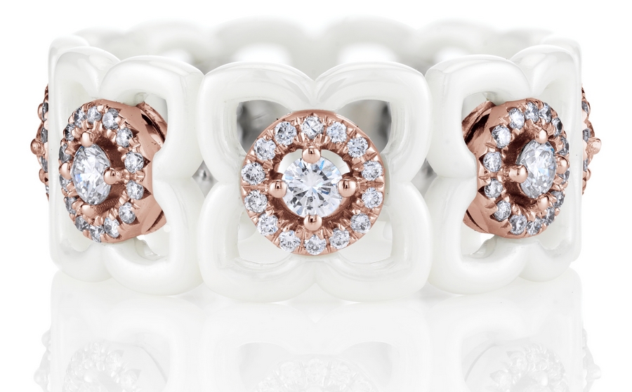 Pushing the boundaries of artistry to bring original creations, De Beers Diamond Jewellers introduces open work ceramic in the Enchanted Lotus Collection. The bold contrast of ceramic colour and texture honours the diamonds’ brilliance and creates a graphic interpretation of the feminine Enchanted Lotus motif.