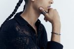 The white gold pieces include a pendant in the shape of an irregular octagon, featuring rows of pave-set diamonds, and a bracelet with a white gold barrel circumvented with diamond lines and threaded onto a black knotted cord for an urban and well-travelled vibe. A signet ring and a band complete the quartet. Smooth and solid in form, they are statements of simplicity and confidence with a hidden meaning.
