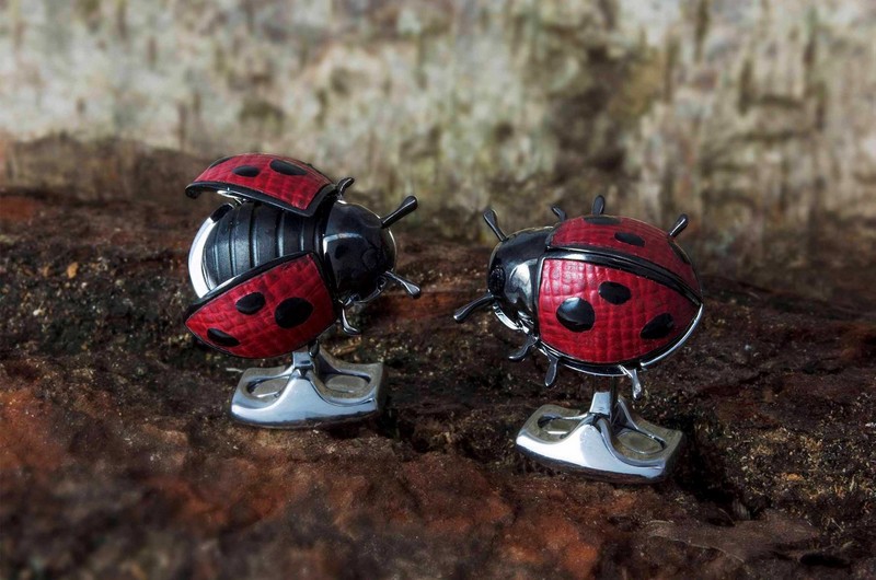 Showcased in the ‘Boys Toys’ category is a collection of eight cufflink designs that embody all things ‘fun.’ The cufflinks within this section have been designed to keep the wearer entertained – with an array of hidden surprises. From a sleek, smooth spinning top pair of cufflinks, made with perfection on a high precision lathe, that can be unscrewed and actually spun – to a pair of stunning shotgun cufflinks featuring repelling magnets that open the barrels and reveal beautiful gold cartridge caps when the lever is flicked.