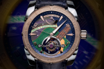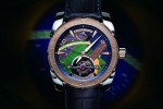 Brazil’s signature green, yellow and blue shades adorn the dial of the luxury timepiece along with a guitar with six strings, as thin as human hair, and fastened in place by hand. “Ordem e Progresso,” Brazil’s national motto, can be read on the elegant titanium case set of by the 18 carat rose gold of the bezel and indices. The unique luxury watch model comes in a presentation case which has been hand-painted with the colours of the Brazilian flag to match.