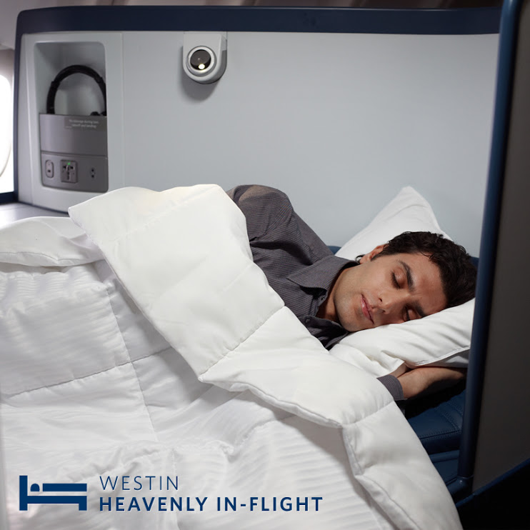 The new Westin Heavenly In-Flight bedding will be available on BusinessElite International flights beginning in June 2013. BusinessElite customers will receive a Westin Heavenly sleeping pillow and a comforter with extra luxurious loft, while passengers on flights over 12 hours also will receive a lumbar pillow.
