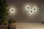 Functioning as both ambient lighting and dynamic sculpture, multiple fixtures can be positioned at random to cast a luminous web of spokes, artfully filling a large blank expanse of wall.