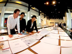 Nils Toft, Song Kee Hong and Takashi Yamada discussing the merits of the concepts presented to them
