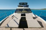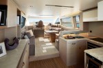 The Flybridge on the new Monte Carlo 6 (MC6) vessel gives a whole new meaning to the art enjoying new heights. Designed to be a vast terrace facing the open seas, it offers a huge sundeck, a spacious saloon that can accommodate up to ten people, and a fully-equipped galley. The helmsman will appreciate the extremely comfortable seat and the nearby presence of a wide bench for the crew. A T-Top or a hydraulic bimini will provide the necessary protection.