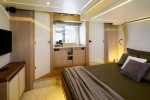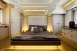 The MC6 yacht offers innovative solutions for the more private quarters of the boat, with an owner suite in the stern featuring an open- plan ensuite bathroom and an inventive way of organizing the beds in the VIP and guest cabins. And to cater for different types of use, a specific version of the MC6 are available for Asia.