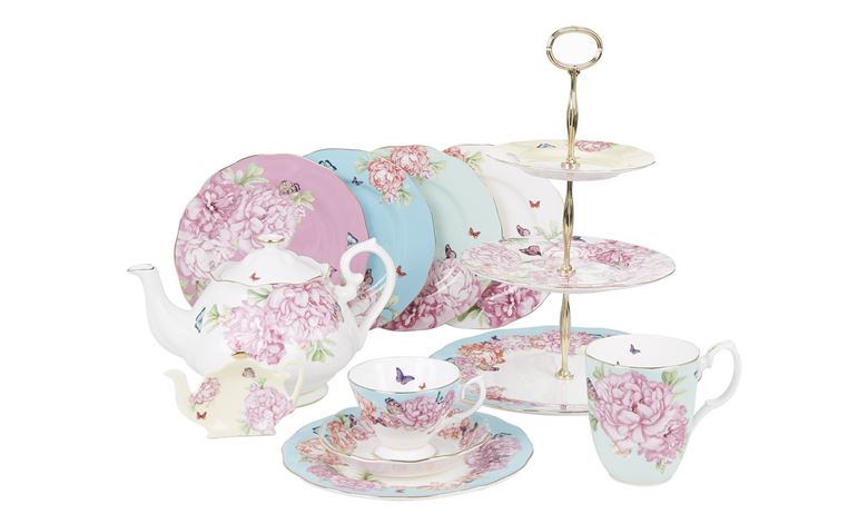 Featuring pretty scatterings of peonies attended to with beautiful butterflies, this sophisticated and feminine floral range is perfect for serving tea time treats.