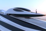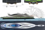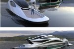 The unique electric watercraft concept is a swan-shaped yacht called “Avanguardia” (‘vanguard’ in English). The head of the swan is both a control tower and a cabin transformed into a 16 meter boat. The ‘neck’ crane moves the head to water level, where jet capsules from the rear jet capsule docking port are transferring passengers to the Avanguardia.