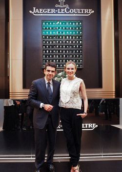 SIHH 2011 was a perfect occasion for Jaeger-LeCoultre to present the hollywood actress Diane Kruger as the new face for Le Sentier-based watch brand. Diane Kruger and Jérôme Lambert , CEO of Jaeger-LeCoultre officially presented the new Reverso Ultra Thin Lady Thin watch.