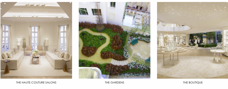 This 10,000-square-meter Dior universe is not only an extraordinary store, but in addition welcomes a haute couture salon, a pastry café and the Monsieur Dior restaurant, with a menu featuring some of the founder’s favorite dishes. The architectural genius of architect Peter Marino has given 30 Montaigne two stunning gardens as well, one open to the exterior, the other in an enclosed glass area.