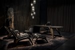 These limited edition pieces comprise a desk, an armchair and a matching foot stool and pay homage to the values embodied at Bentley’s headquarters in Crewe. The metal frames of the pieces are crafted from gold-plated iron, whilst the dark stained oak features are brushed with liquid gold. Each piece celebrates the spirit of a glorious century, whilst looking forward to the years ahead.