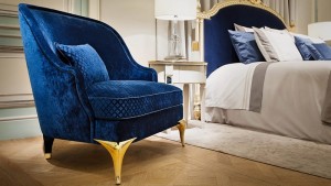Ritzy bergère by Ritz Paris Home Collection – magnificent in its blue velvet upholstery