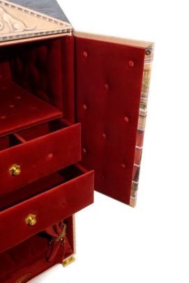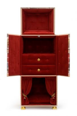 • In its upper part, you can store your companion’s clothing and accessories in the deep upholstered drawers, with handles gilded in 24-carat gold.