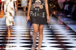 Accordingly, the better designs here played with the idea a bit more. The opening outfit wasn’t very princessy at all. Instead, it was the frocked coat and britches borrowed from the prince. Another model wore a man’s jacket over her bias-cut floral dress, and chunky boots. There were also outfits in case the princess needed to get an office job: a white blouse with embroidery, worn with a pencil skirt, and a simple black dress with a cat in sequins on the skirt. “It’s the princess of today, the new generation,” said Stefano Gabbana backstage before the show.