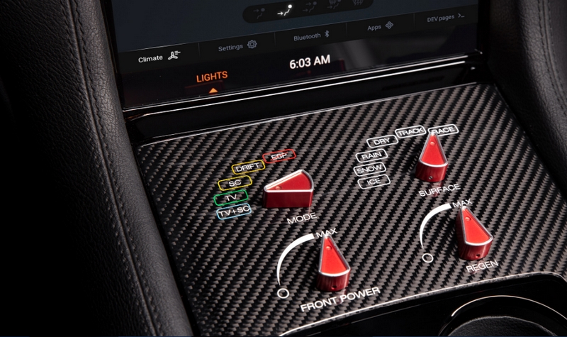 Drako’s driver oriented Quattro Manettino consists of four console mounted switches to dial-in every aspect of the driving experience.