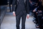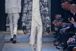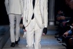2014 Varvatos’ silhouette is slim and elegant. “The color palette is nightly and shimmering, with sudden surprises. Black, charcoal, silver, grey, either matte or metallic, give way to heather and light grey and finally open up to creamy white. Fabrics are masculine, with a tactile quality: brushed wools, flannel, washed calfskin, feather-effect weaves, silk and cashmere yarns,” explained the fashion house.