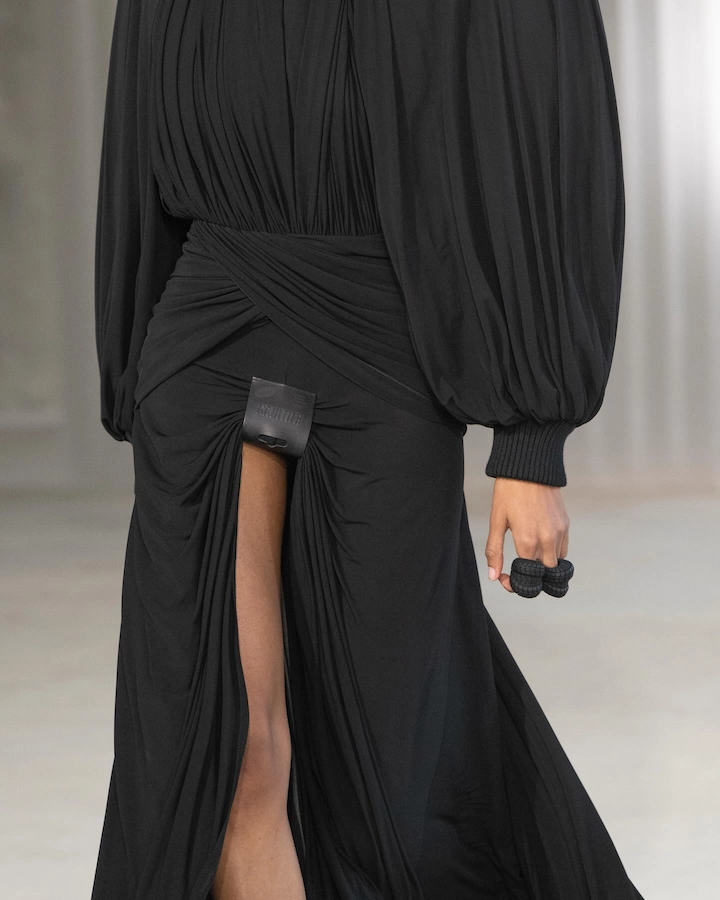 The late 1980s Amsterdam club scene — Lantink’s spiritual home as much as his biographical one — ran through the collection like an electrical current. There was something of the underground about it: clothes that knew they were going somewhere dark and loud and wonderful, clothes that had something to prove and every intention of proving it. The silhouettes were not pretty in any conventional sense. They were compelling, which is considerably more interesting.