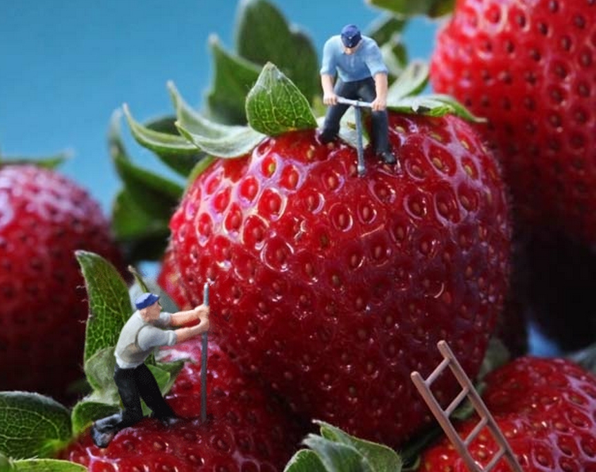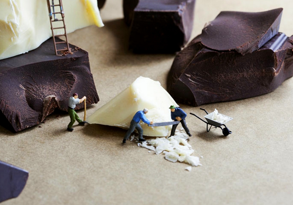 Inspired by “Honey I Shrunk the Kids” and “The Incredible Shrinking Woman” movies and culturally recurring theme of visual size disparity, photographer Christopher Boffoli has made a big splash with his series of fine art photographs featuring tiny figures photographed against real food backdrops. The theme goes back to the social satire of the 18th century’s Gulliver’s Travels. Now the work is headed to New York with a solo photography show, “Edible Worlds,” which opened June 21st at Winston Wachter Fine Art in Chelsea and runs through August 24, 2012.