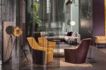 Inside – the showcasing of inspiring interiors, new products for Living and Contract. Such as the extension to the sofa range Jaan Living and new side tables made of high-grade, rare natural stone, marble or onyx marble – new luxury pieces with the pure aura of the material. The presentation was rounded off with new lounge chairs as well as the first collection of upholstered beds.